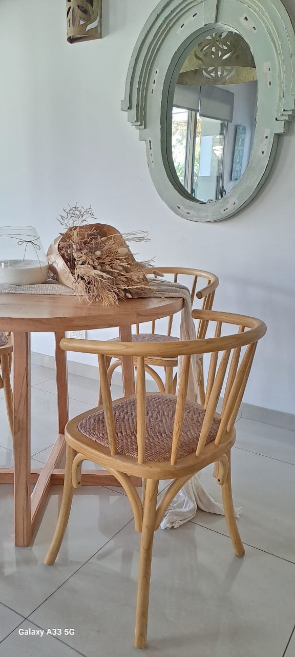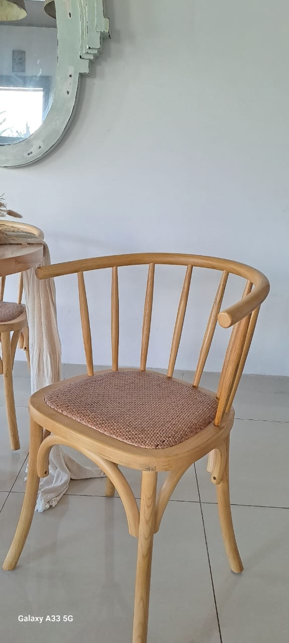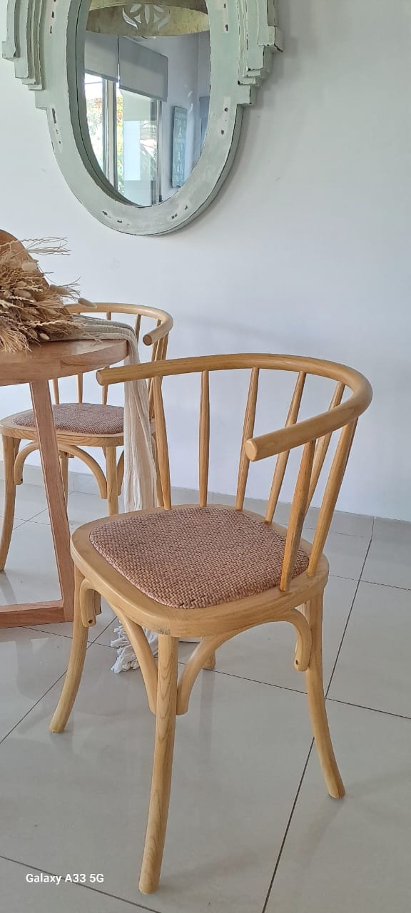Silla Bistro estructura madera de olmo natural laqueada y asiento de rattan