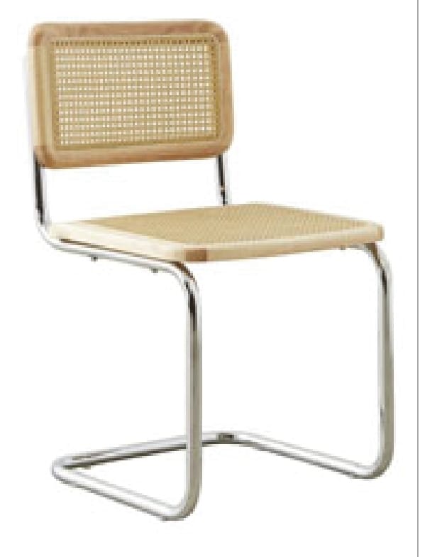 Silla Breuer madera de haya estructura metal cromado y asiento de rattan