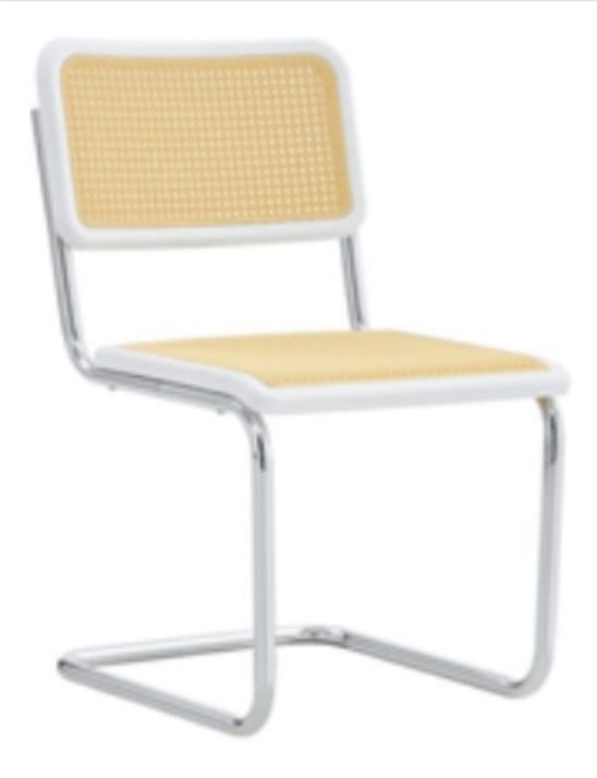 Silla Breuer madera de haya Pintada blanca estructura metal cromado y asiento de rattan
