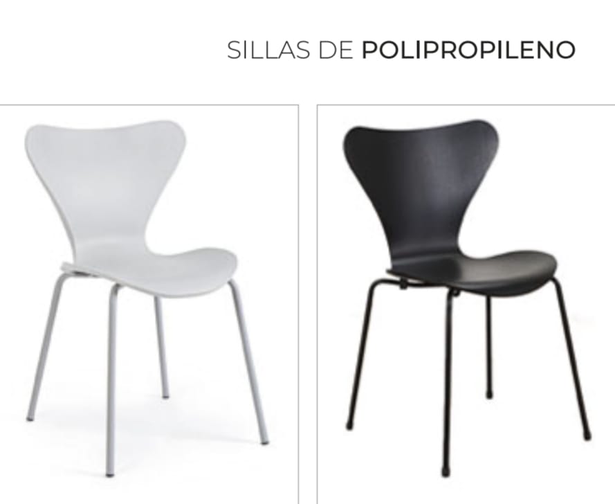 Silla Jacob fabricado en polipropileno de alta densidad con patas de hierro pintadas en horno a tono color blanco negro verde gris.
